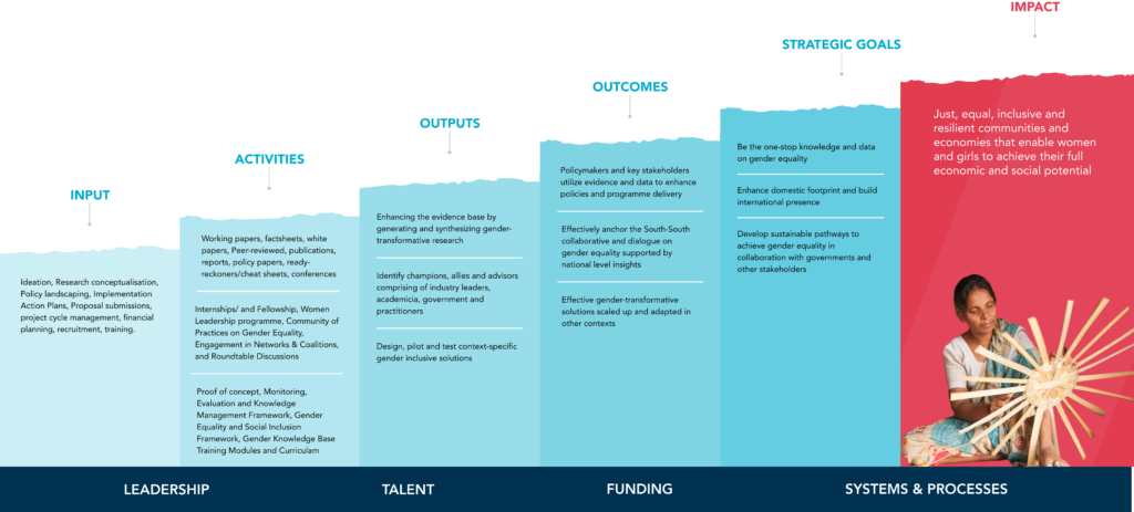 Our Mission is to be a Centre of Excellence on Gender Equality and a Partner of Choice for driving gender transformative change through evidence generation, policy engagement, capacity building, and community leadership development, particularly focusing on women and girls