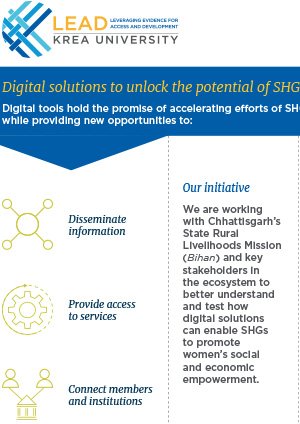 Digital tools offer immense potential for accelerating women’s empowerment, enhancing the impact of ongoing initiatives, and providing women with new avenues to improve knowledge and share information. Over the past year, the Initiative of What Works to Advance Women and Girls in the Economy (IWWAGE), part of LEAD at Krea University, has been collaborating with the Government of Chhattisgarh and other partners to map existing digitisation initiatives aimed at empowering women in the state, evaluate their effectiveness, and explore opportunities for improvement.