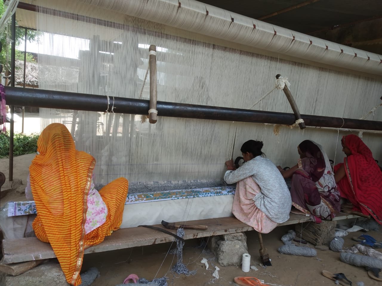 Within a 45-minute ride from Jaipur, lies a small village Chomu. Dotted with countless independent looms and community workshops operated by women, the village is a vivid representation of rural India’s cottage industry.  Workshops set up by private companies and Self-Help Groups (SHGs) become places for skill training and a source of livelihood for these homepreneurs. This practice has enabled craft clusters to develop organically in small pockets across Rajasthan.