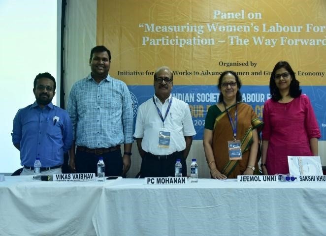 The panellists included Jeemol Unni (Professor of Economics, Amrut Mody School of Management), Hema Swaminathan (Professor, Centre for Public Policy, Indian Institute of Management Bangalore), PC Mohanan (Former Chairman, National Statistical Commission (NSC)), Vikash Vaibhav (Special Secretary, Home Department, Government of Bihar, Indian Police Service), and Parushya (Research Manager, IWWAGE). The moderator for the session was Dr. Sakshi Khurana (Consultant, NITI Aayog).
