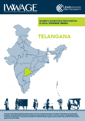 Telangana, India’s newest state, formed in 2014, has quickly emerged as a growing economy with a per capita income nearly double the national average. While agriculture employs 38% of its population, the services sector is the largest contributor to the state’s economy. Telangana shows promising progress in education, with a Gross Enrolment Ratio (GER) for higher education at 35 and a Gender Parity Index (GPI) of 1.05, favoring women. Government initiatives, such as 33.3% reservation for women in state jobs and support for Self-Help Groups, aim to further women’s economic empowerment. This factsheet explores the state’s socio-economic trends and women’s participation in the workforce.