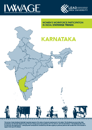 Karnataka, the sixth largest state in India, covers an area of 191,791 square kilometres and has a Gross State Domestic Product (GSDP) of INR 18.85 trillion. Known as India’s leading Information Technology hub, with Bengaluru as the tech capital, Karnataka also has a diverse economy with a strong agricultural base. While over 41% of the workforce depends on agriculture, the services sector contributes 66% to the state’s GSDP. Karnataka boasts one of the highest female labour force participation rates in India, with a Work Participation Rate (WPR) of 31.5% as per the 2021-22 PLFS. Women workers are primarily engaged in agriculture in rural areas and in manufacturing and services in urban regions. This factsheet provides an overview of Karnataka’s socio-economic landscape and workforce trends.