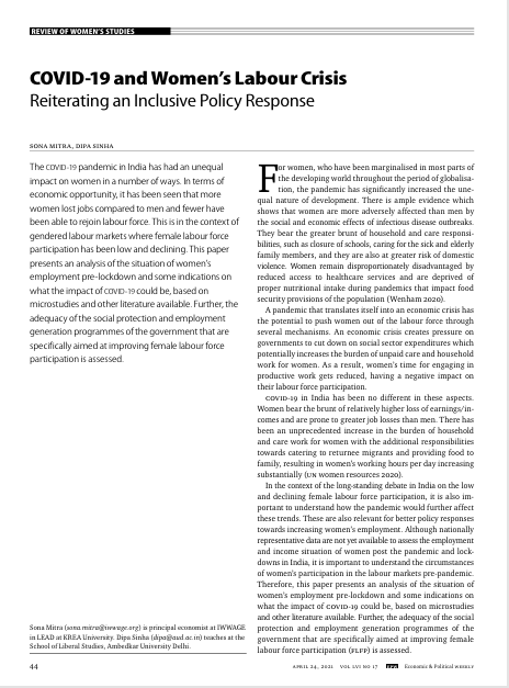 COVID-19 and Women’s Labour Crisis