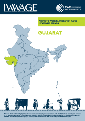 Gujarat, one of India’s most industrially advanced states, is a hub for textile manufacturing and diamond trade with a high GSDP per capita of Rs 1,65,414. Despite its economic strengths, Gujarat faces significant challenges in social development. The state has a low sex ratio (866 females per 1,000 males) and high rates of under-nutrition, with 55% of women aged 15-49 being anaemic. Education indicators also lag behind national averages, and gender inequality in the labour market is prevalent. The female labour force participation rate (FLFPR) stands at 16.9%, below the national average, with large gender disparities in both rural and urban areas. This factsheet explores key economic and social indicators for Gujarat in 2020.